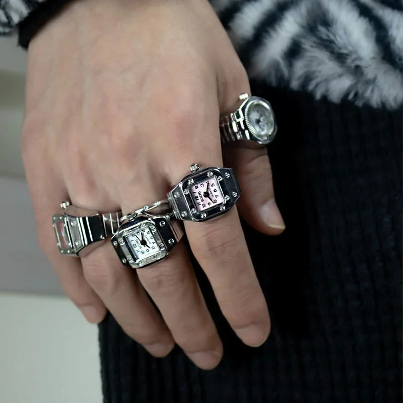 These uniquely designed finger watch rings blend the charm of classic timepieces with the creativity of modern jewelry, creating a striking accessory that instantly stands out. Crafted with a compact dial set into a sturdy ring frame, this wearable timepiece sits comfortably on the finger while offering a clear, easy-to-read display. The polished metallic finish adds a premium look, making it suitable for both everyday wear and special occasions. Unlike traditional watches, this design frees the wrist and transforms timekeeping into a fashion statement that feels fresh, playful, and confidently different.