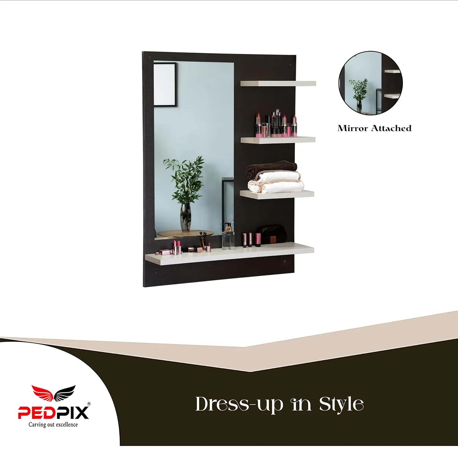 Crafted for durability and daily use, this dressing mirror is ideal for compact spaces where smart storage matters. The sturdy construction ensures stability, while the wall mounted design helps save floor space and keeps the area clutter free.