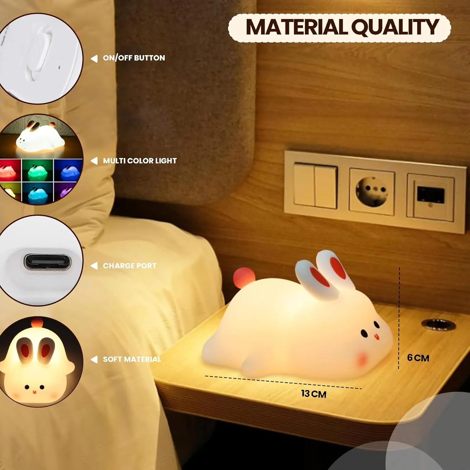 Crafted with safe and durable material, this night light is ideal for everyday use. It also makes a thoughtful gift for birthdays, baby showers, or anyone who enjoys cute and functional home décor. Simple, charming, and practical, the Big Face Rabbit Night Light is a small addition that makes a big difference in creating a cozy vibe.