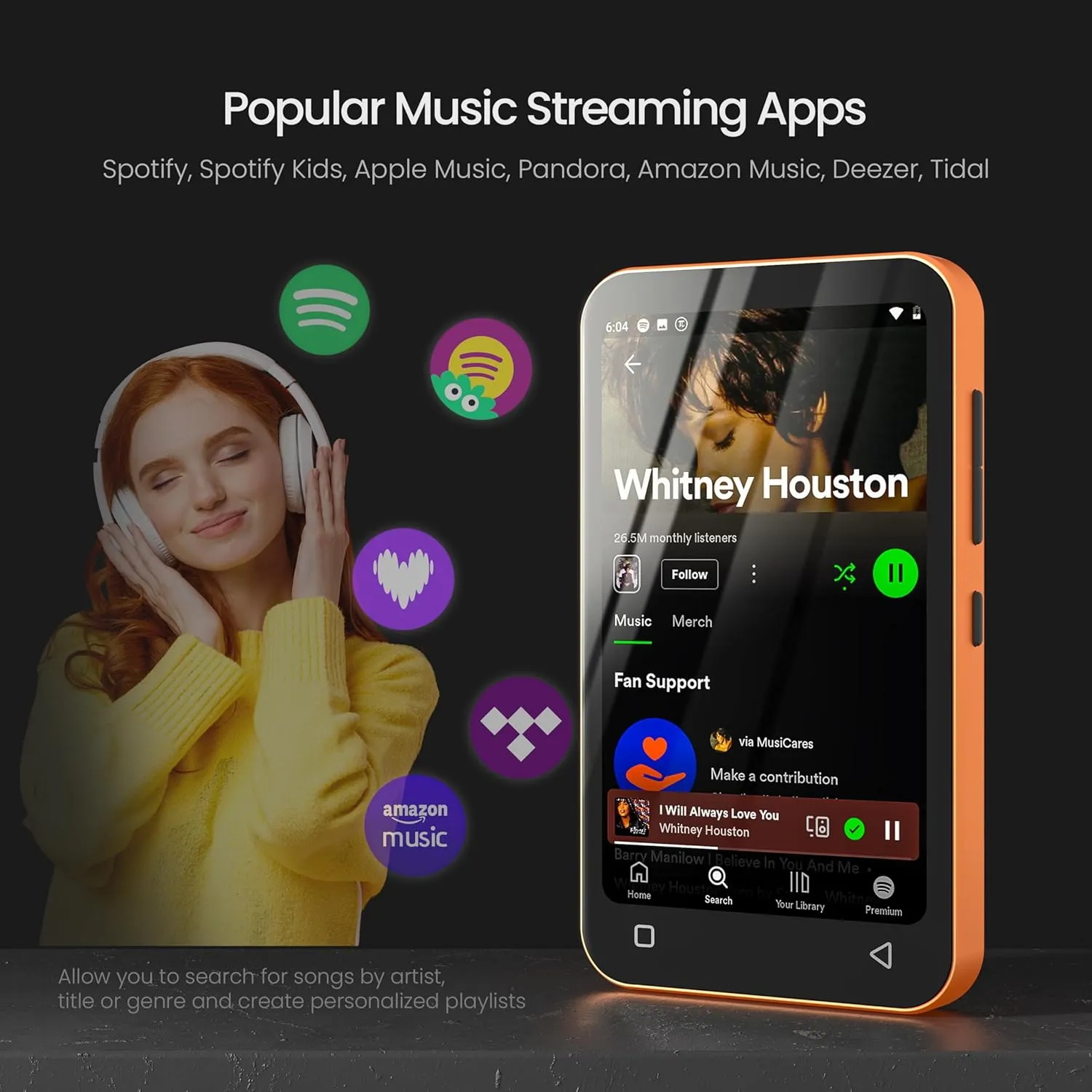 Supporting popular music streaming apps, this device lets you enjoy your favorite songs, playlists, and audio content anytime. Built in wireless connectivity ensures seamless access to online music, while the intuitive interface makes navigation simple even for first time users. It is ideal for daily listening, workouts, or travel.