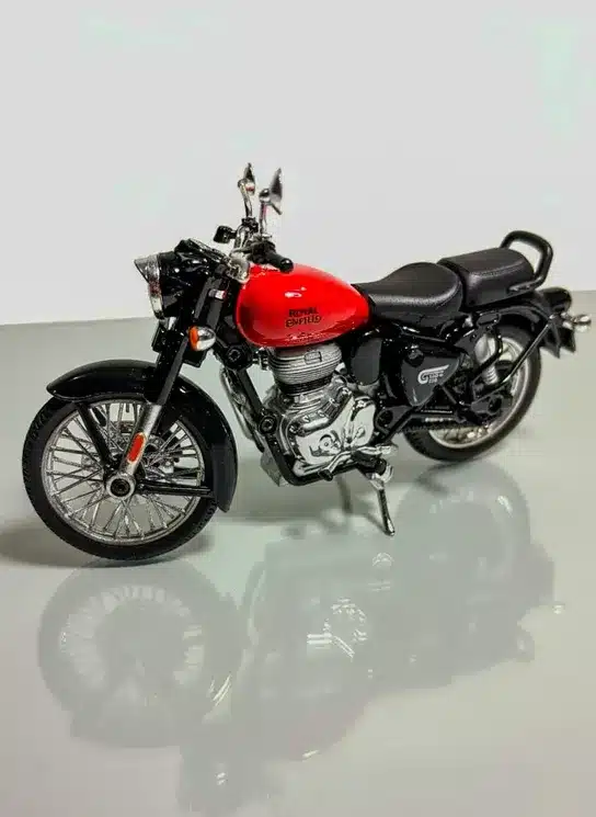The Royal Enfield Classic Die-Cast Bike Model is a highly detailed miniature replica inspired by the iconic Royal Enfield motorcycle design. Made from durable metal with precision detailing, this model captures the classic styling of the legendary Royal Enfield bikes. It is perfect for collectors, motorcycle enthusiasts, and children who enjoy realistic toy vehicles.