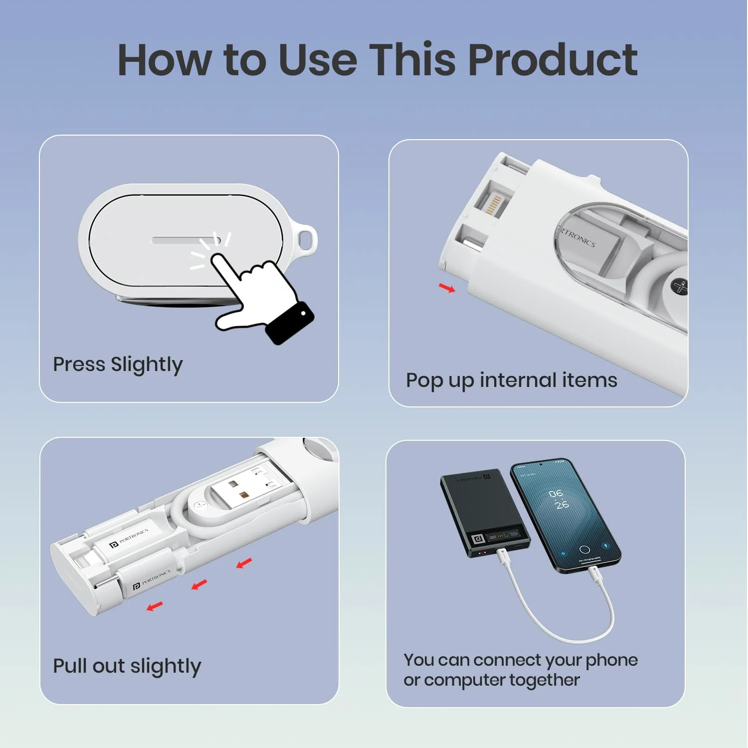 The built-in charging cable supports multiple device types, allowing convenient connection between smartphones, tablets, and other compatible electronics without carrying extra wires. The neatly coiled cable remains tangle-free inside the case, ensuring quick access and hassle-free use. This all-in-one design makes it especially useful for travelers, professionals, and anyone who frequently switches between devices.